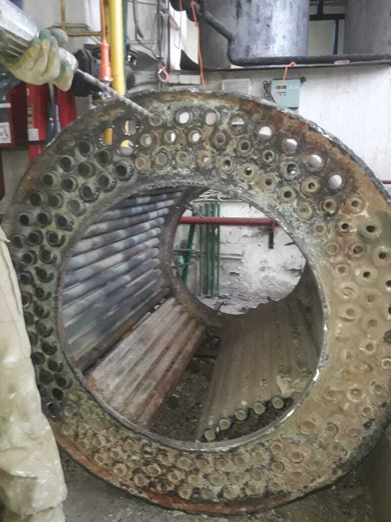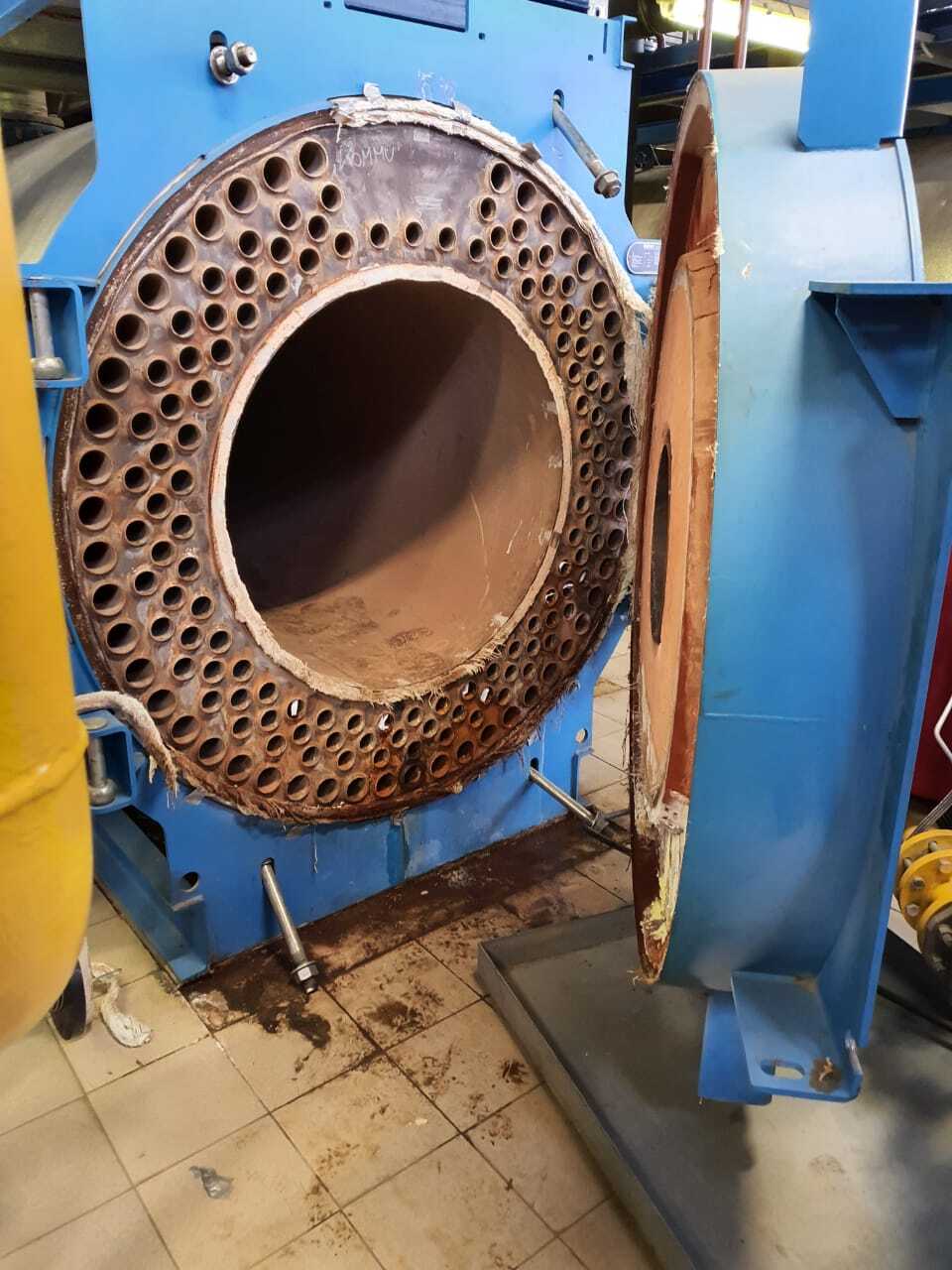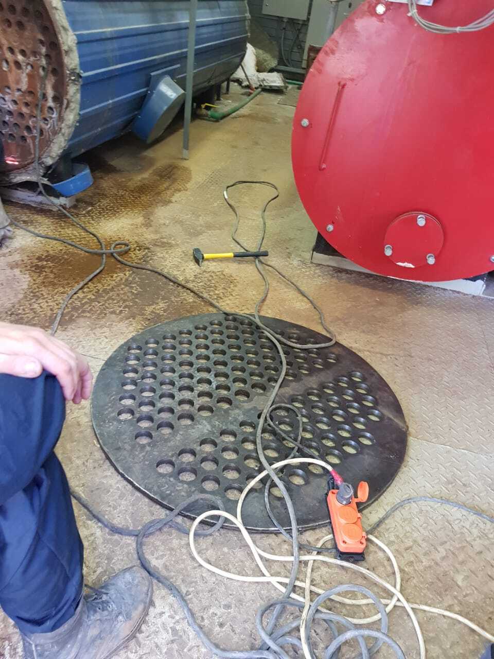 Полный демонтаж котла, его разборка (трубные доски и жаровые трубы) проверка всех систем и магистралей, выявление неисправностей и замена поврежденных деталей